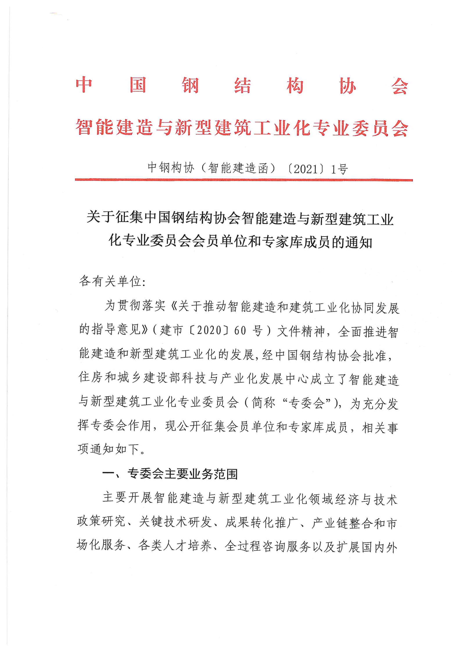 转发 | 《关于征集中国钢结构协会智能建造与新型建筑工业化专家委员会会员单位和点点taptap娱乐平台成员的通知》